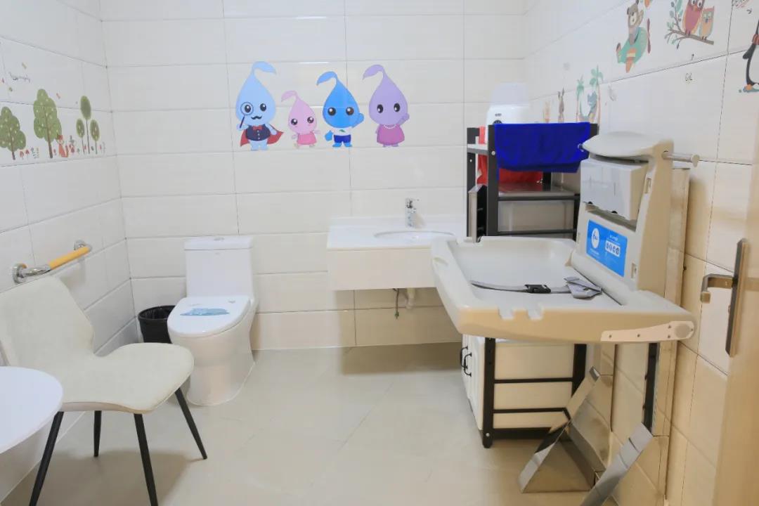 旅游中心设置有旅游厕所、自助茶水间和母婴室;自助茶水间采用了沁园品牌过滤开水机,可为游客免费提供清洁饮用水;母婴室,配备有马桶、休息桌椅、母婴护理台以及微波炉、温奶器、婴儿车等便民设备,还张贴了吉祥物“柳柳”家族可爱贴画,为有需要的游客妈妈和宝宝们提供一个温馨、便利的私密空间。