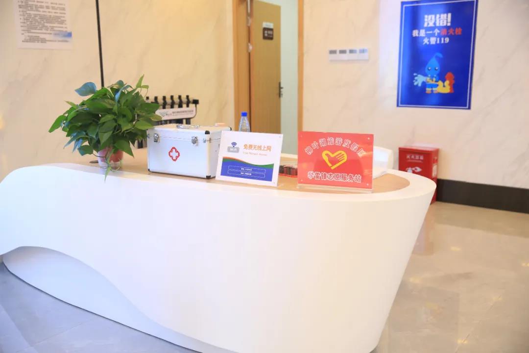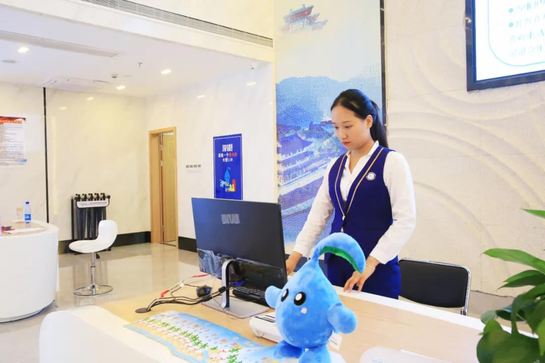游客中心内分散设置有休憩桌椅,可同时满足40位游客的休憩需求;设有共享充电宝,供游客随时租借使用,解决手机没有电的烦恼。此外,游客中心还提供雨伞、轮椅、拐杖等便民设施的租借服务,全方位的满足游客的服务需求。