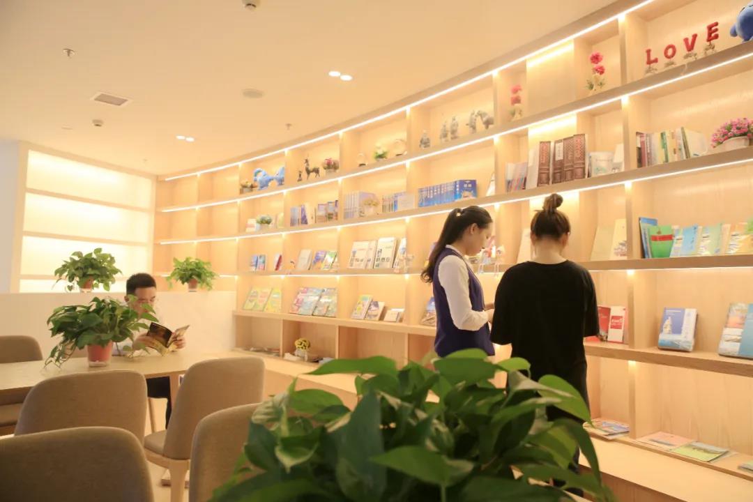 服务中心的书吧,供游客休息的同时还可免费阅读书籍,打造出一个充满书香的舒适空间。旁边这面绿色墙便是供小孩子们玩的乐高积木墙了,让孩子们在这儿也能寻找到不一样的乐趣。