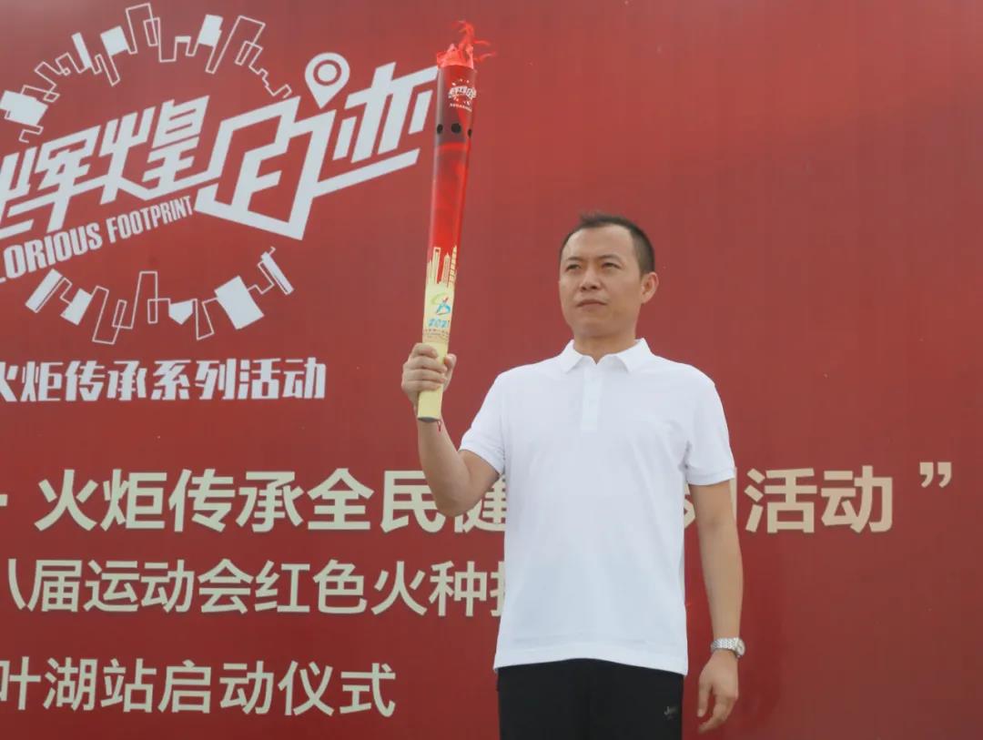 柳叶湖旅游度假区党工委书记袁世平点燃第一站火炬,宣布活动开始。