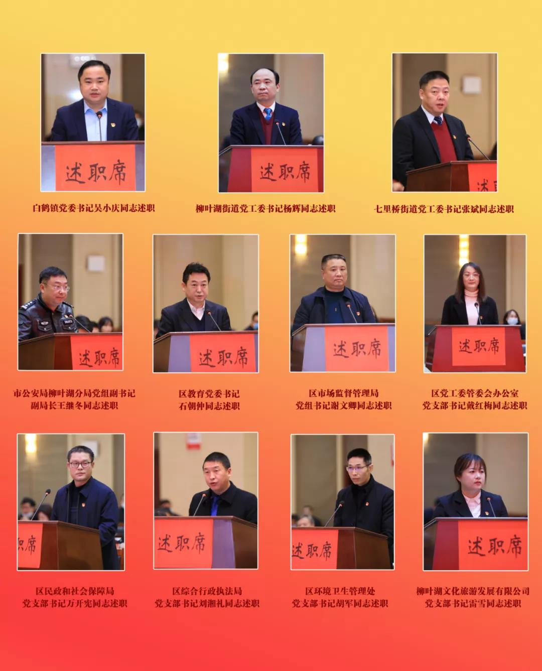 此次评议分为述职汇报、领导点评、现场测评三个环节。白鹤镇、柳叶湖街道、七里桥街道、公安分局等11个单位党组织书记先后口头述职,深入查摆剖析存在的问题和原因,并就做好下一步工作谈打算、定举措,同时接受现场点评和与会人员的测评;其余区直机关、事业单位党组织书记进行了书面述职。