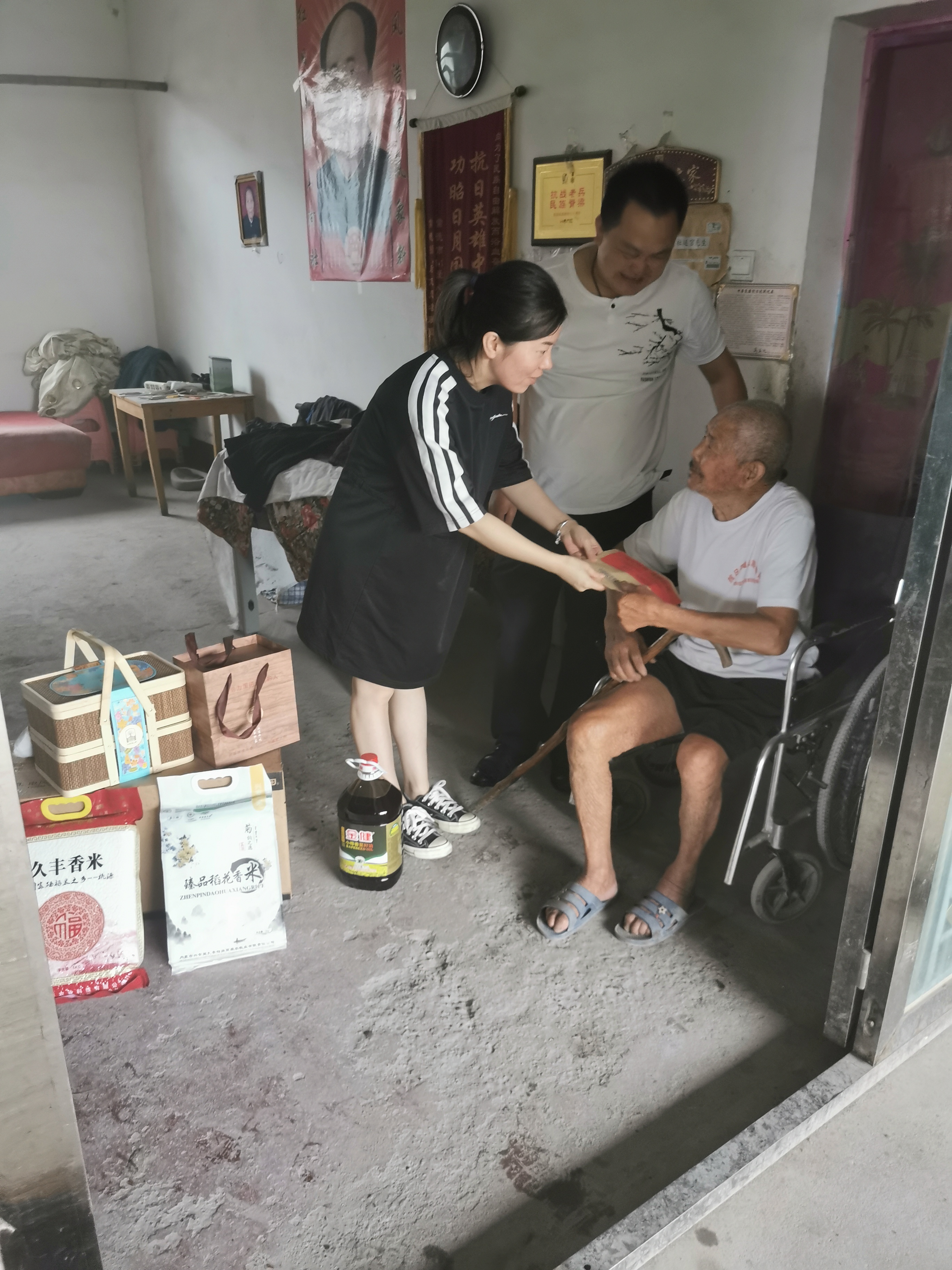 我们给杜老送去了慰问金、油米、茶叶、端午礼盒、电风扇等物资。礼轻情意重,这是我们关爱抗战老兵的一份沉甸甸的心意!我们希望年年岁岁都来看望老人。他们就是我们的亲人,只有他们健康,健在,我们才心安,开心。让我们遗憾的是辖区的97岁的老兵马新成,已不在了。回忆上次看望他的情景,历历在目。再也见不到他了,真让我们心痛!希望在看望老兵的路上,我们能赢得这场同时间的赛跑,我们要尽可能多地去看望、慰问、关爱他们。真诚祝愿老兵健康长寿,幸福快乐!