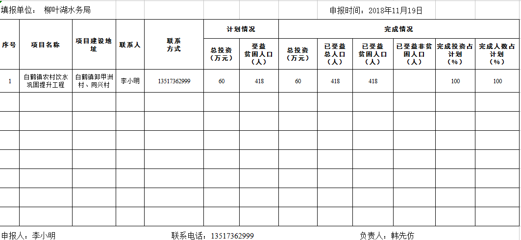 柳叶湖旅游度假区重点民生实事农村饮水安全巩固提升项目完成情况表