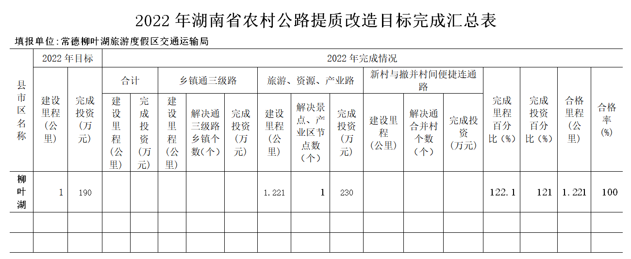 根据省市年初计划和市实事办要求,现将常德柳叶湖旅游度假区交通运输局所承担的2022年为民办实事任务完成情况公示如下:
