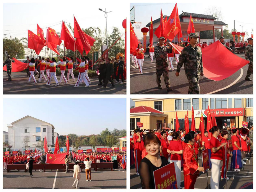 上午8时,伴随《运动员进行曲》,24支来自白鹤镇及周边地区的文艺表演队在猴子巷村民兵连的带领下依次入场,大家齐聚在广场前坪,用大合唱《没有共产党就没有新中国》和集体舞《爱我中华》、《中国广场舞》、《二十年后再相会》为精彩的文艺汇演拉开序幕。