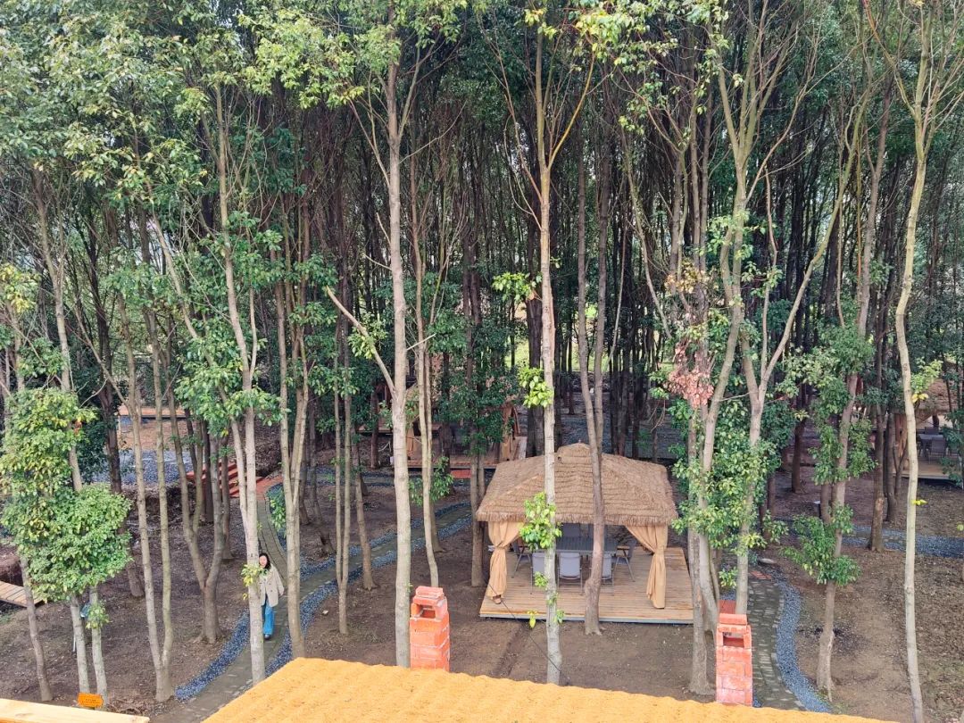 云起柳院分为户外婚礼区、餐饮区、咖啡休闲区、儿童游乐区、围炉煮茶区、林下之风区、垂钓区,自助烧烤区、露营区及亲子田园区。适合宴客、团建、亲子田园游,是田园生活与现代文旅交织的升级版小院。
