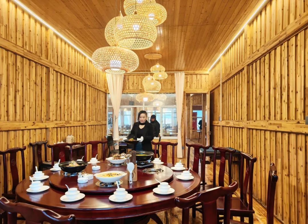 “云起柳院”景观设计动静分区合理、菜品烹饪用料讲究,细节中体现了经营者对乡村现代文旅需求的充分考量。当迈进云雾升腾、花溪淙淙的院落,原木装饰的墙面,温暖质朴又不失现代。小树林下三五好友,可以静享慢时光;小鱼塘边,竹编的凉棚,让游客无忧风雨,尽享垂钓之乐;土锅土灶炖一锅鲜香美味,别有一番滋味。小院还设置了小型会议室及阅读室,满足游客多层次需求。