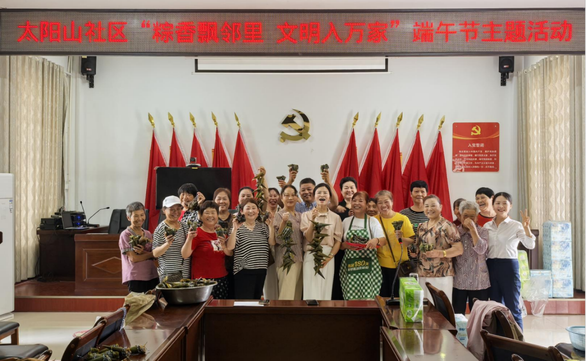 6月7日上午,太阳山社区新时代文明实践站开展“粽香飘邻里,文明入万家”端午包粽子比赛活动。