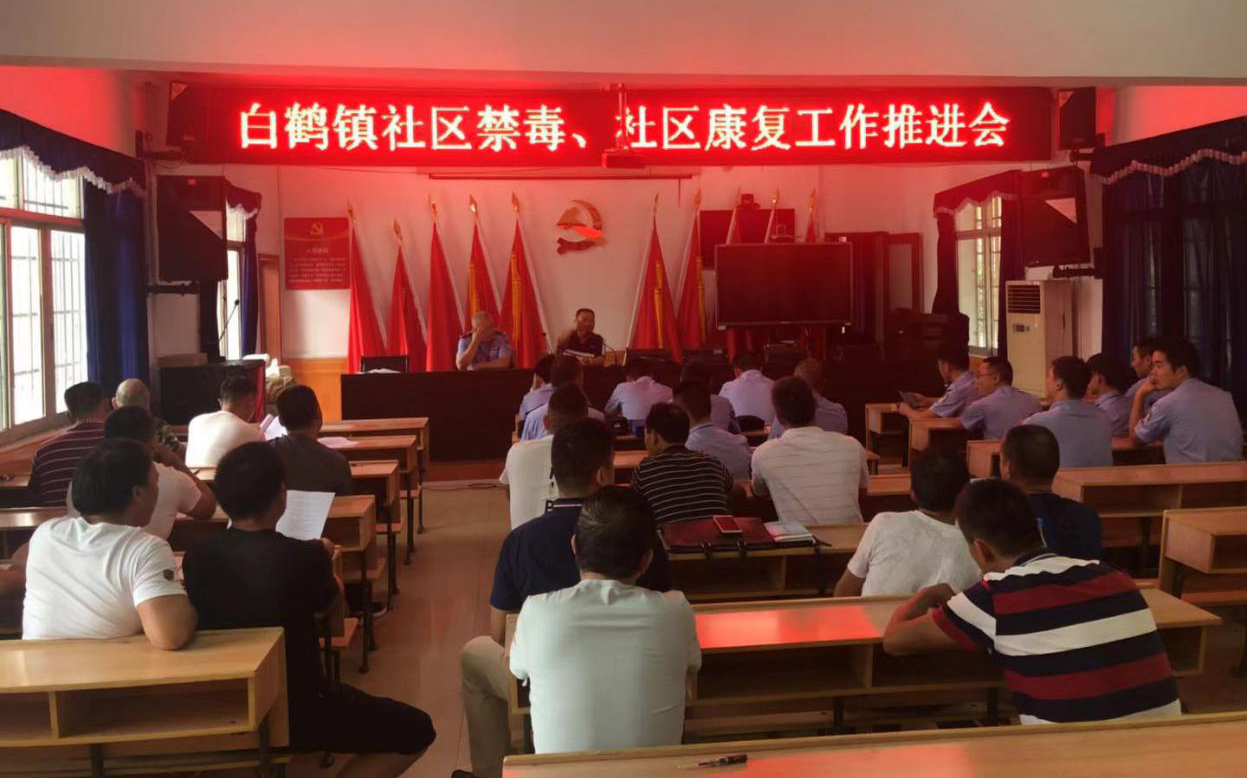 8月29日,白鹤镇召开社区戒毒、社区康复工作推进会,白鹤镇政法委书记杨子忠,白鹤派出所所长戴峻峰,综治办主任刘湘林,派出所全体干警和辅警,各村(社区)治调主任,社区戒毒、社区康复人员参加了会议。