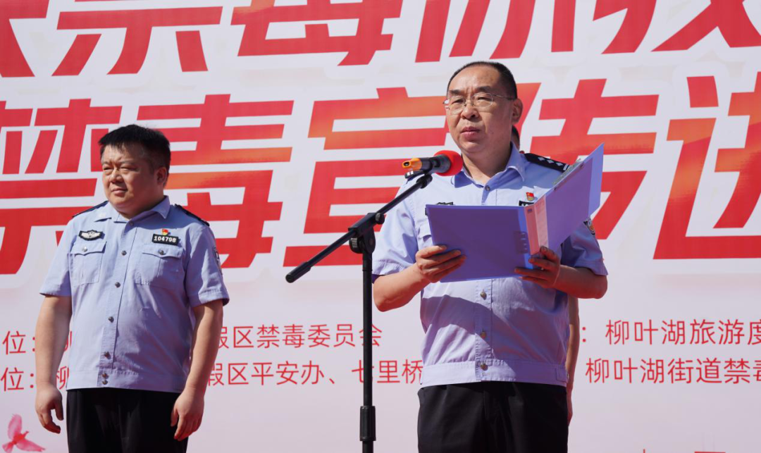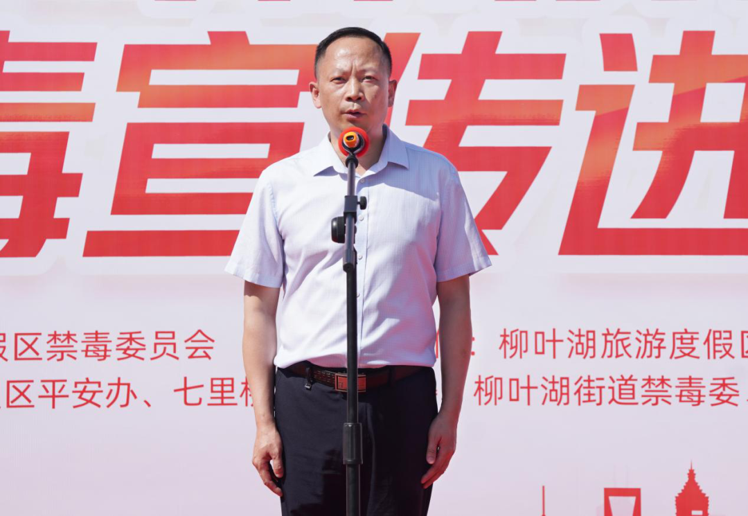 活动中,柳叶湖公安分局党组副书记,政委丁卫东发出了柳叶湖旅游度假区参与常德市创建禁毒示范城市的倡议。他强调了禁毒工作的重要性,表达了严格执法,坚决打击毒品犯罪的决心和信心,并呼吁广大市民积极参与禁毒宣传活动,共同构建禁毒的铜墙铁壁。