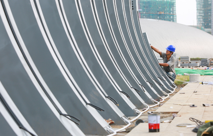 柳叶湖游客广场 火热“升级”中 2018-07-25 16:05 来源:柳叶湖度假区 点击次数:次 分享到: 【打印】 【字体:小 大】 昨日上午,柳叶湖游客广场提质项目施工处,工人正在为新建的“彩虹廊架”铺设电线。据介绍,柳叶湖游客广场提质项目总投资6000多万元,主要包括游船码头、两个旅游公厕拆除重建、驳岸、绿化提升、景观改造、停车位提质、新增体验馆、生态餐厅等。项目预计8月30日前完工。 扫一扫在手机打开当前页