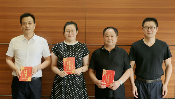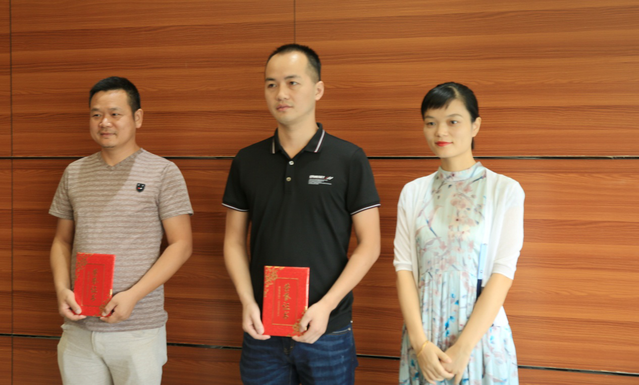管委会副调研员朱向宇为二等奖获得者姚运来、徐尚平颁奖并合影