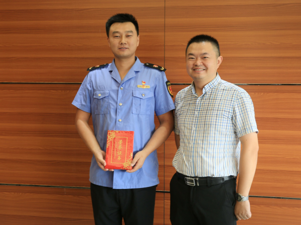 管委会副主任吴金与为一等奖获得者胡斌颁奖并合影