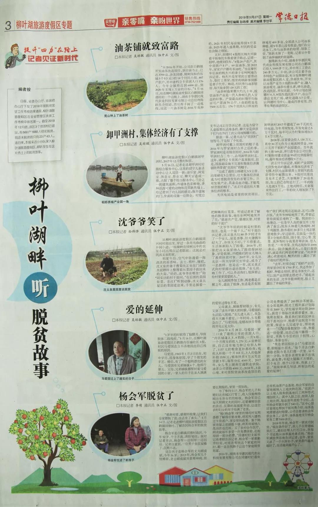 常德日报专版刊发柳叶湖扶贫故事