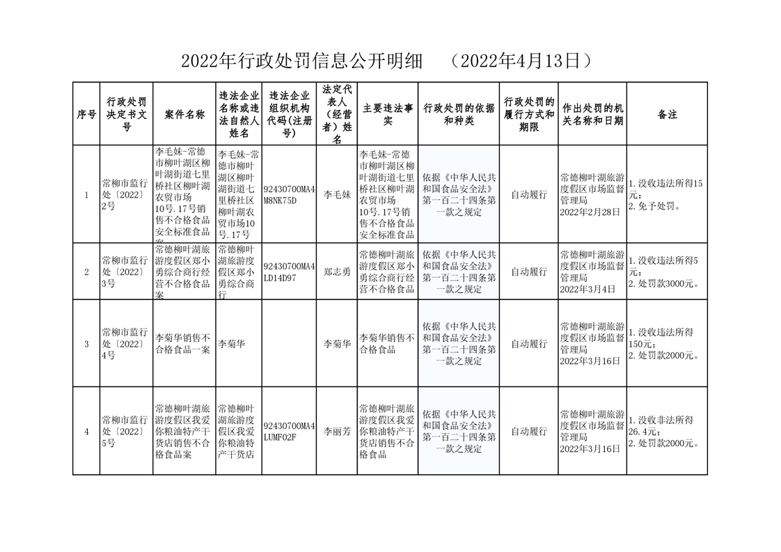 2022年行政处罚信息公开明细 (2022年4月13日)