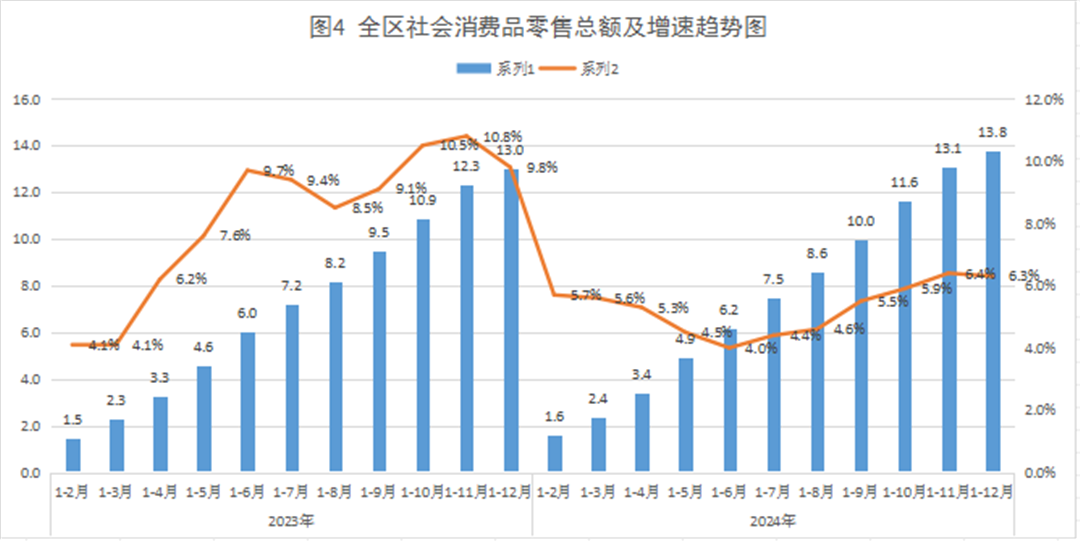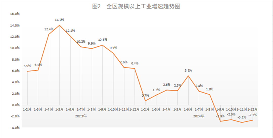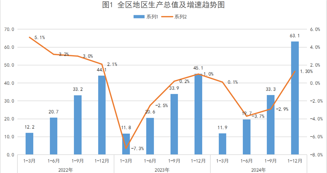 ●元至12月,全区地区生产总值63.1亿元,增长1.3%;规模以上工业增加值增长-2.7%;固定资产投资(不含跨区)下降22.6%;社会消费品零售总额13.8亿元,增长6.3%。